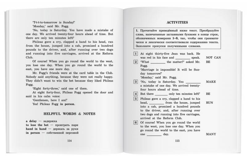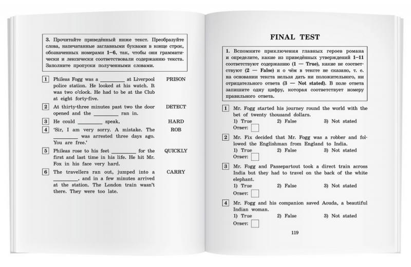 Книга представляет собой адаптацию увлекательного романа Жюля Верна "Вокруг света за 80 дней". Герой романа, Филеас Фогг, побился об заклад, что сумеет обогнуть земной шар с запада на восток в срок не более 80 дней. Путешествие Фогга начинается в Англии, далее он отправляется во Францию, Египет, Индию, Китай, Японию, Америку. По пути ему встречается множество опасностей, и Фогг не раз проявляет мужество и находчивость: в качестве средств передвижения он использует поезда, пароходы и даже слона, подвергается нападению индейцев, спасает от смерти прекрасную индийскую принцессу. Данное пособие поможет учащимся средней школы подготовиться к основному государственному экзамену по английскому языку. Текст пособия адаптирован в учебных целях до уровня Elementary. Каждая глава сопровождается комментарием, переводом трудных слов и выражений, а также упражнениями, направленными на формирование коммуникативной компетенции учащихся. Упражнения позволят сформировать коммуникативные умения в чтении, письменной речи и говорении, а также развить лексико-грамматические навыки. В конце пособия помещён словарь, а также тест в формате ОГЭ с ключами. Книга предназначена учащимся 5 - 8 классов образовательных организаций, а также широкому кругу лиц, изучающих английский язык. Диск в формате MP3 содержит английский текст книги (без упражнений), начитанный профессиональным диктором - носителем английского языка в учебном темпе (с ясным произношением и немного медленнее по сравнению с естественным темпом речи). Запись может быть использована как для обучения аудированию (восприятию речи на слух), так и для прослушивания параллельно с чтением текста.