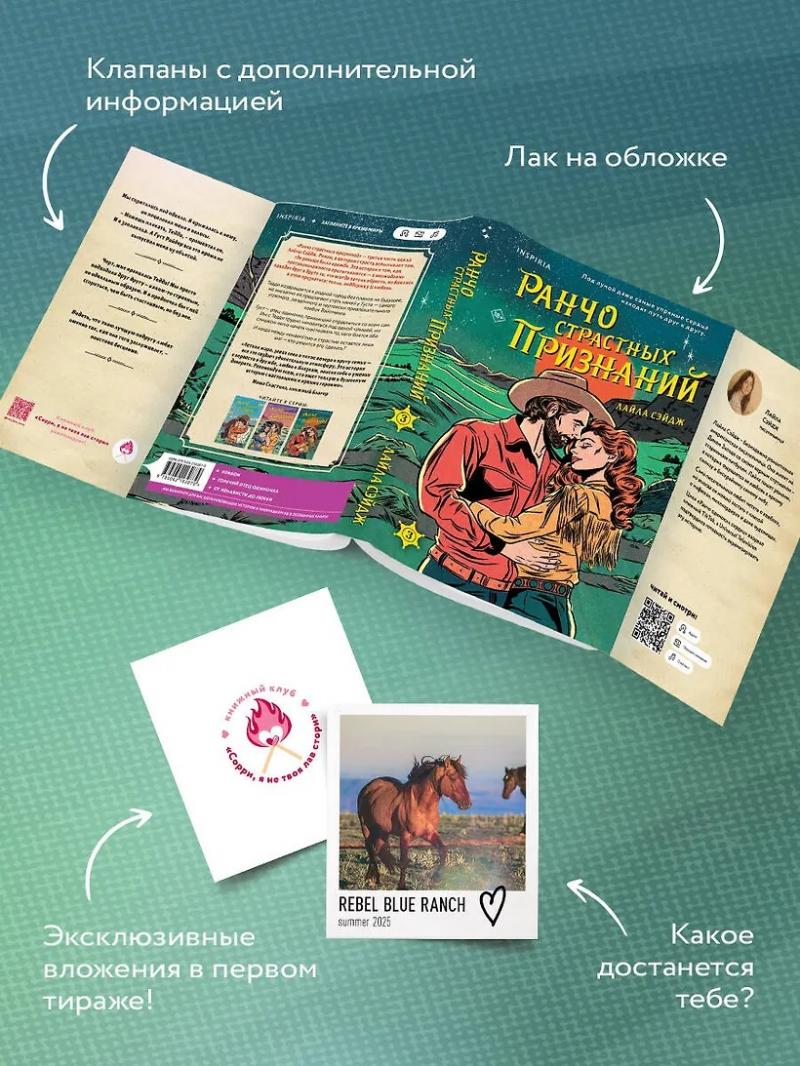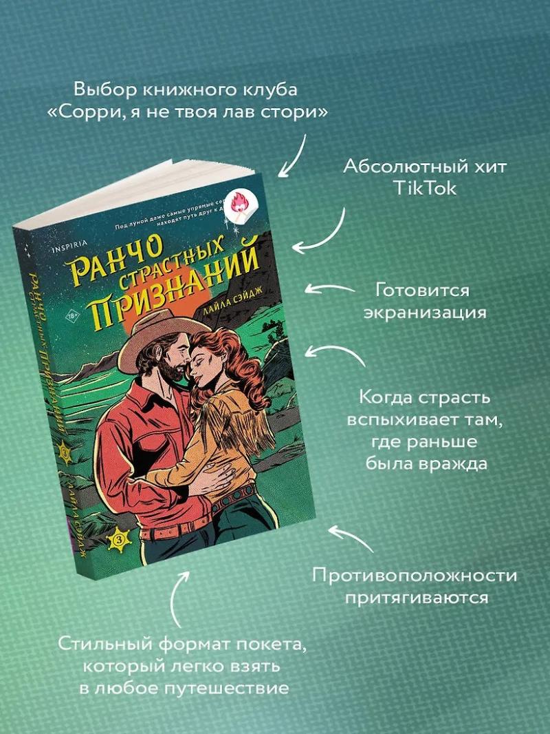 «Ранчо страстных признаний» — третья часть цикла Лайлы Сэйдж. Роман, в котором страсть вспыхивает там, где раньше была вражда. Это история о том, как противоположности притягиваются — и неожиданно находят друг в друге то, что всегда хотели обрести, но боялись в этом признаться: тепло, поддержку и любовь. Абсолютный хит TikTok. По циклу готовится экранизация. Только в первом тираже — эксклюзивные вложения в книгу.